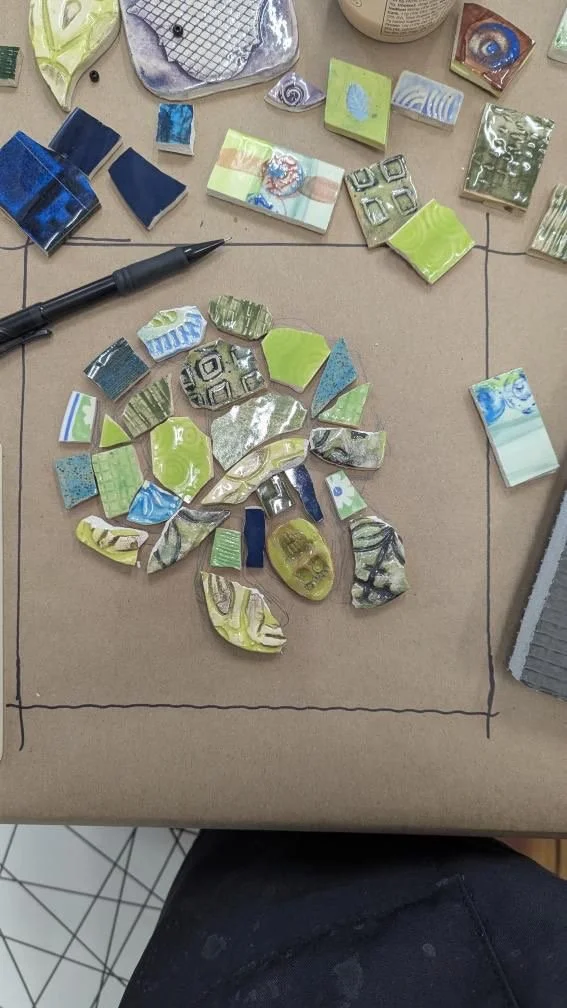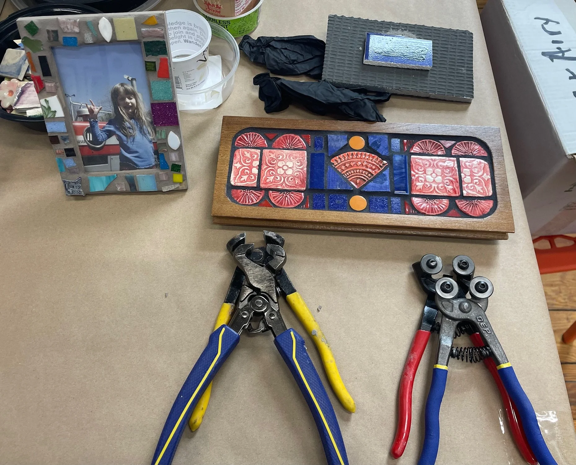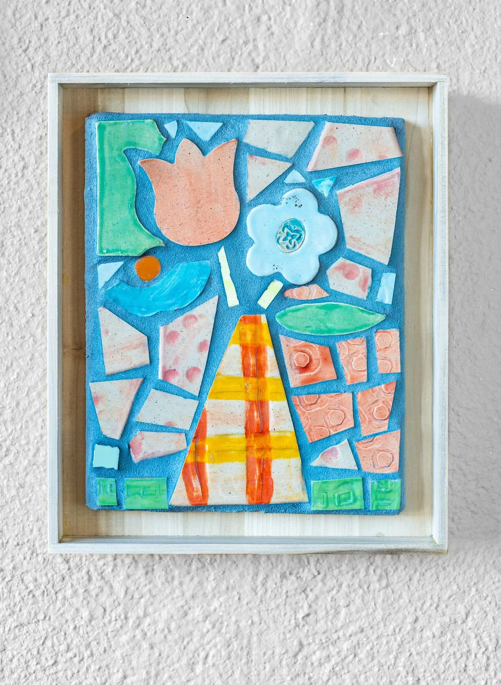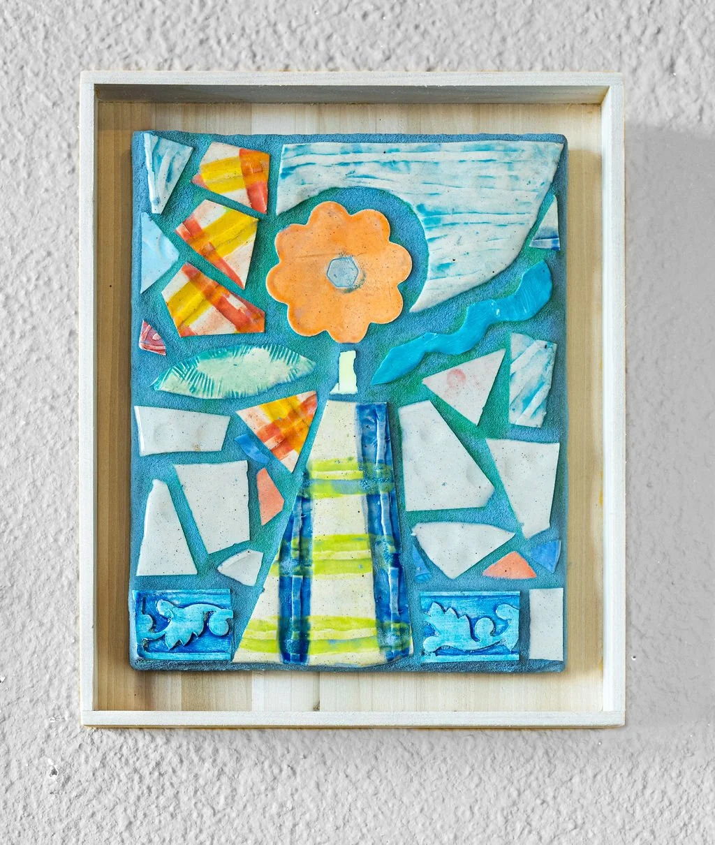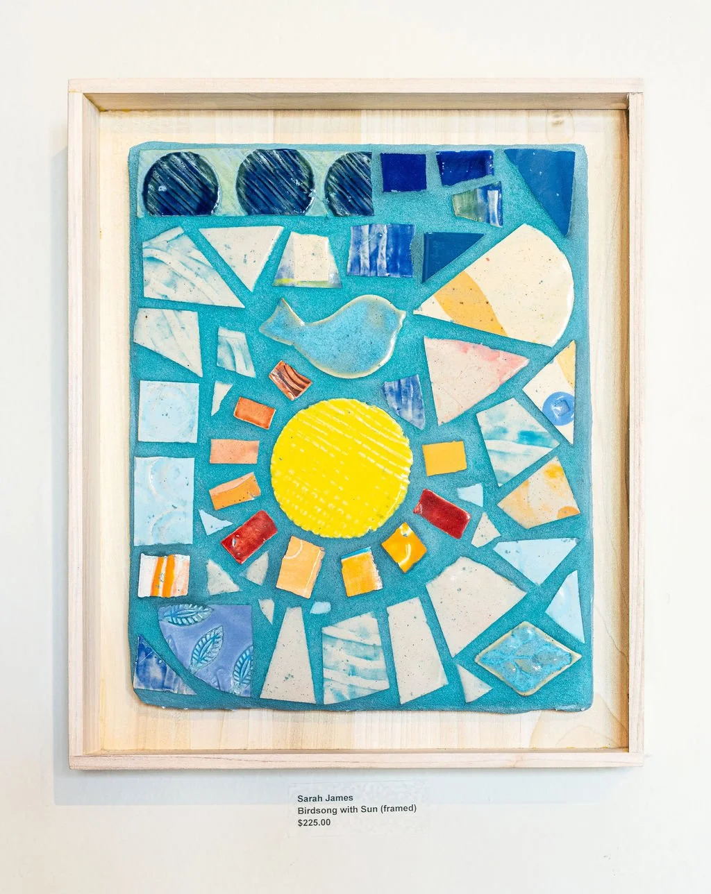 Shop Intro to Mosaics class Sunday, January 11th 1-3:30 PM $75.00 Holiday stamp and card making, Saturday, December 6, 2-4 PM $40.00 Card Box Holiday Sweaters - Green and Blue $18.00 Card Box Holiday Sweaters - Red and Blue $18.00 Wish I Had a River $6.00 Clouds and sun $6.00 Checked table cloth cards $6.00 Strawberries in Season $6.00 Quilt - grays and blues $6.00 Flowers in Blue/Green Plaid Vase framed mosaic $250.00 Bird and Sun framed mosaic $250.00 Flowers in Orange Plaid Vase framed mosaic $250.00 Hanging Air plant pot in the glaze of your choice (includes plant) $35.00